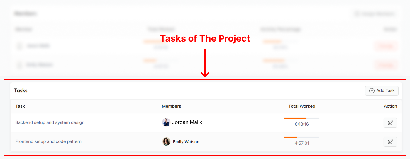 Tasks help you break down project work into smaller, manageable units. Each task can be assigned to one or more members, and its time usage will be reflected in the project's overall performance.